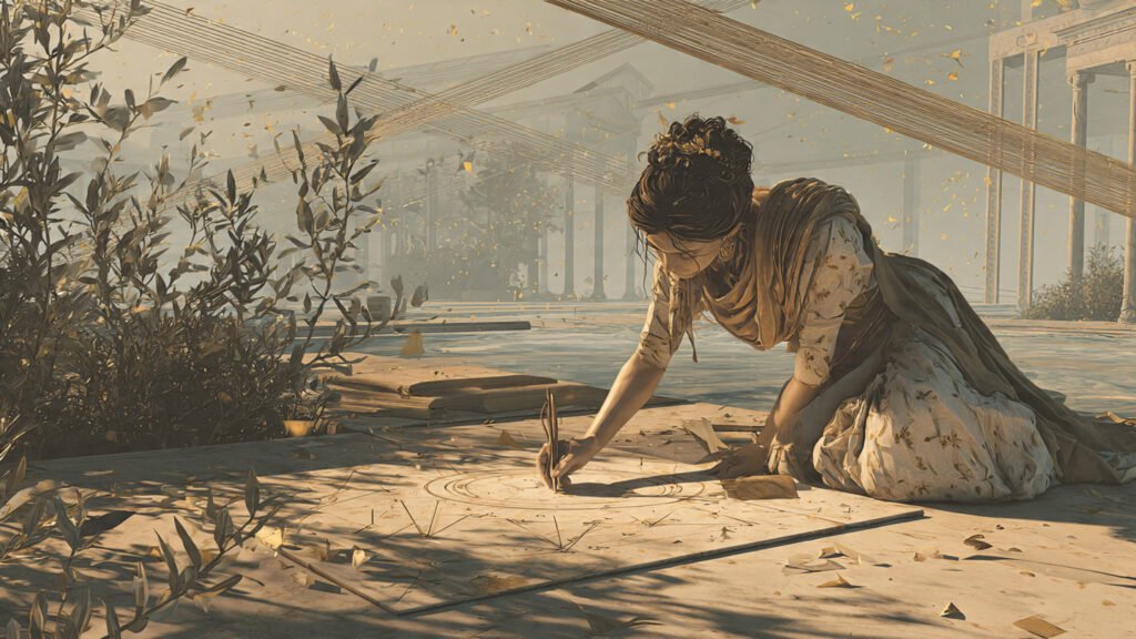 Un ejemplo que me gusta mucho para ilustrar esta verdad lo encontramos en la vida de Hypatia de Alejandría. En el siglo IV, cuando ser mujer y dedicarse a la filosofía era prácticamente un acto de desafío, ella reunía a sus discípulos en plazas y jardines. No tenía pizarras ni instrumentos de lujo, así que tomaba un palo y trazaba en la arena los diagramas geométricos que explicaba. A los ojos de cualquiera, aquellos dibujos efímeros parecían insignificantes: el viento podía borrarlos en segundos, la multitud podía pisotearlos y desaparecerlos. Pero lo esencial no estaba en la arena, sino en la mente de sus alumnos. Hypatia sabía que cuando una idea se siembra con claridad en la mente, nada ni nadie puede borrarla. Aquellos trazos en la tierra eran simplemente un medio para encender imágenes en las conciencias de quienes la escuchaban.